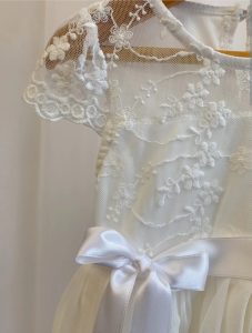 El Vestido Bianca es una prenda delicada y elegante, diseñada especialmente para acompañar uno de los momentos más importantes en la vida de tu pequeña.