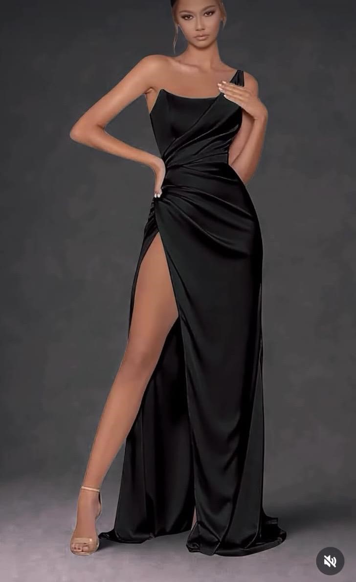 Un vestido que redefine la elegancia y la sensualidad. Su diseño de un solo hombro y su caída impecable crean un look sofisticado, moderno y absolutamente irresistible para ocasiones especiales.